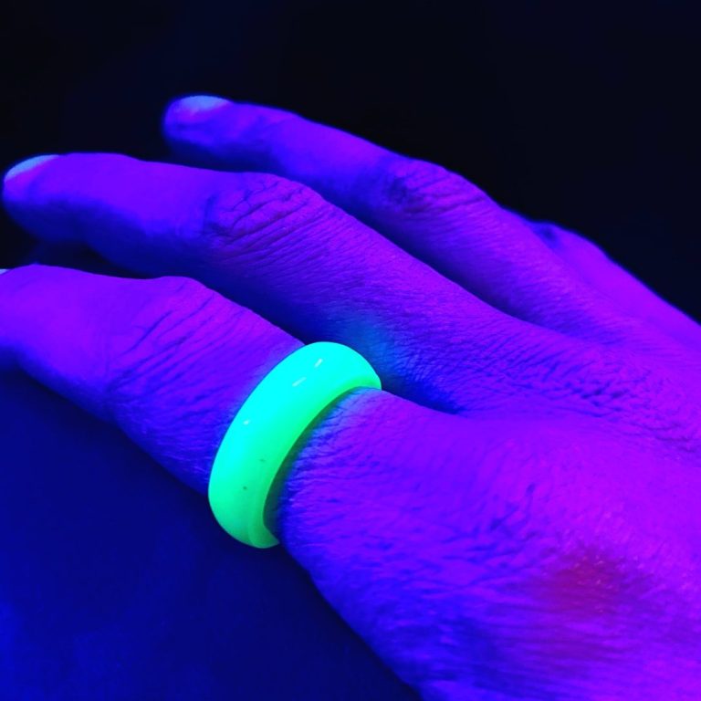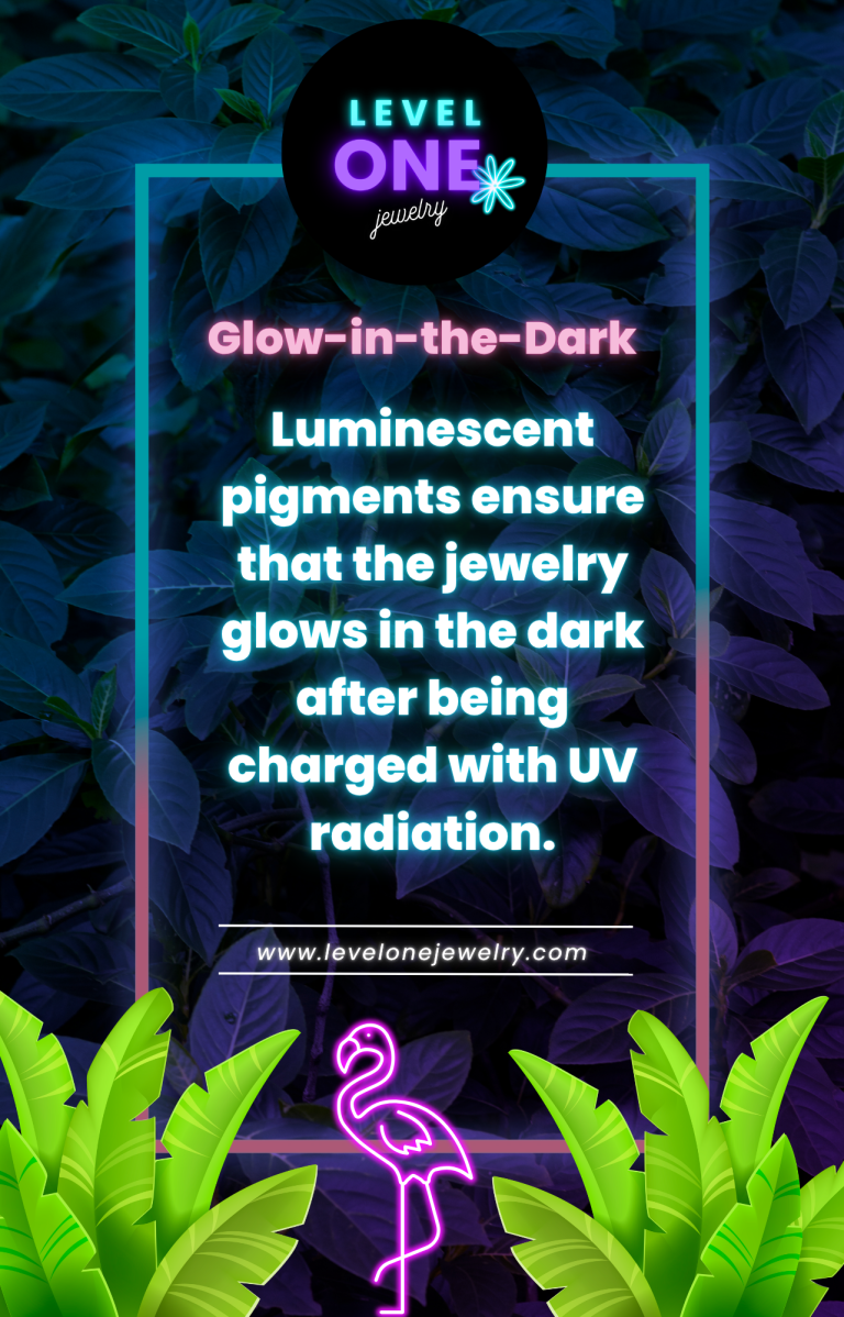 Unser Glow-in-the-Dark Schmuck wird handgefertigt in Deutschland. Spezielle Pigmente bringen den Schmuck unter Schwarzlicht zum leuchten und laden sich bei Tag auf.